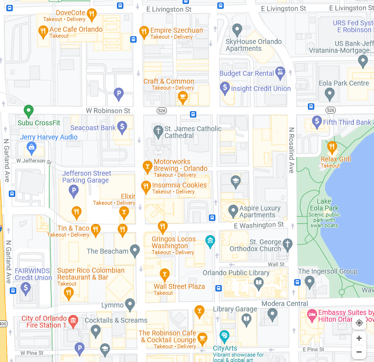 Both our wedding and reception are located in downtown Orlando. There will be a small gap between the end of our wedding service and the beginning of our cocktail hour. This is an excellent time to grab a coffee, enjoy a stroll around Lake Eola, or freshen up at your hotel.